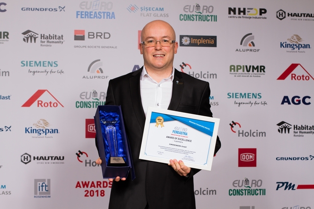 Trofeele si diplomele de excelenta au fost acordate pentru promovarea de solutii inovatoare in domeniul tamplariei termoizolante si contributia speciala adusa la dezvoltarea pietei de ferestre din Romania, in cadrul sectiunilor: