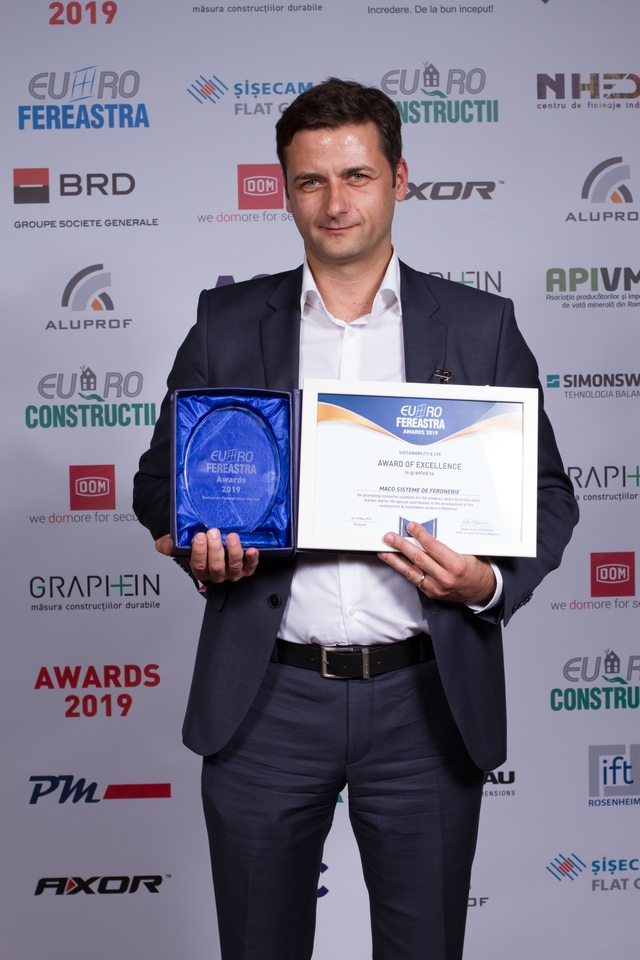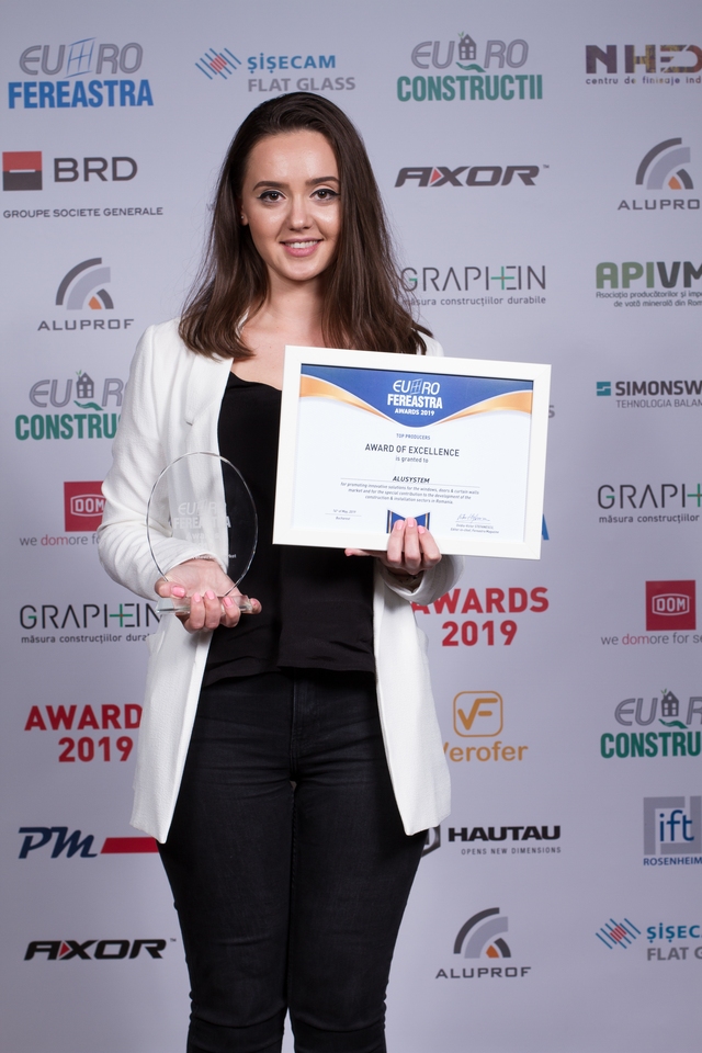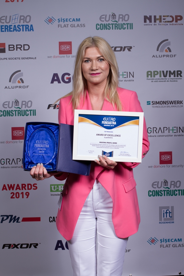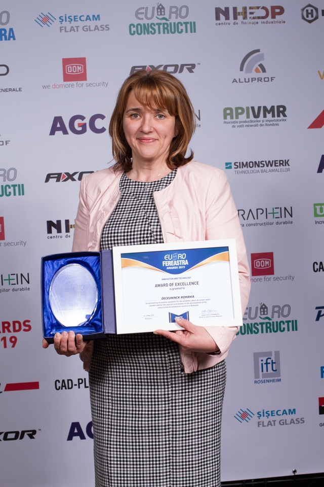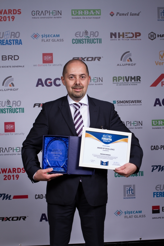 Trofeele şi diplomele de excelenţă au fost acordate pentru promovarea de soluţii inovatoare în domeniul tâmplăriei termoizolante şi contribuţia specială adusă la dezvoltarea pieţei de ferestre din România, în cadrul secţiunilor: